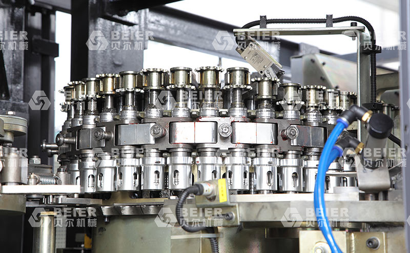 貝爾專業的工程師團隊研發出全新的吹灌封一體機,解決了飲料企業的設備穩定性和操作的簡易性。吹灌封(吹瓶、灌裝和旋蓋一體機)主要用于生產0.3-2.0升PET瓶裝水。一體機能耗低,同時采用模塊化和節約空間的設計,凸輪驅動的拉伸桿系統能有效提高生產精度和穩定性,新型的設計,讓吹瓶單腔產量達到 2,000 瓶/小時。吹灌封一體機不僅使水的灌裝變得更簡單,更是產能最大化和成本最小化的完美結合。吹灌封一體機安裝簡便,對水廠空間環境要求較低,3種標準化機型滿足您對設備產能的不同要求。保養簡便、換模時間短的特點實現了集成化的吹灌旋一體機系統。