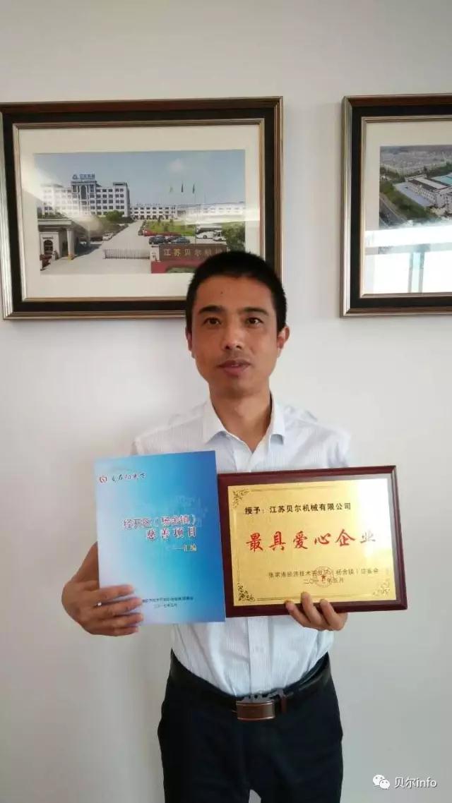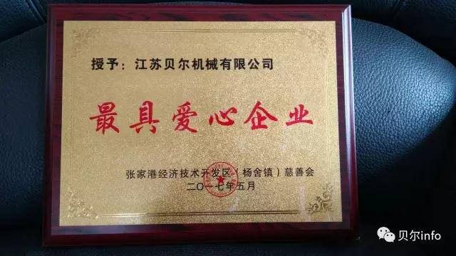 今天,江蘇貝爾機械榮獲經濟技術開發區慈善會頒發的‘最具愛心企業’稱號。