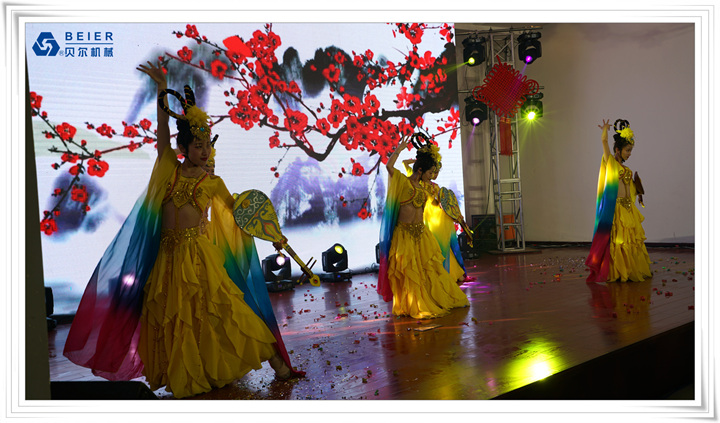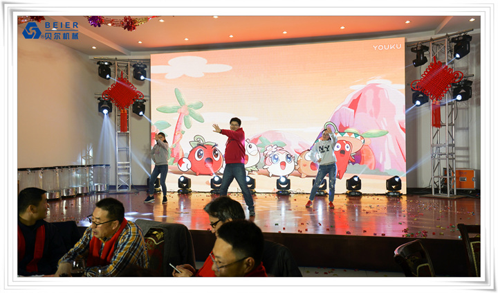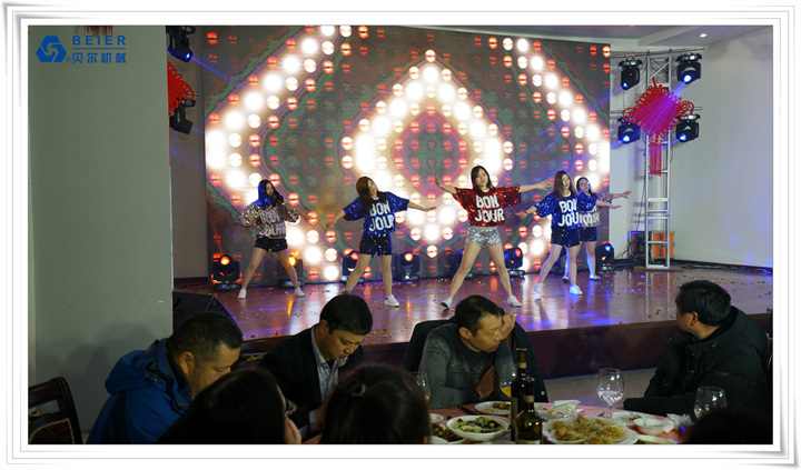 在表演開始前,董事長何德方致以新春致辭,他慷慨激昂地回顧了公司2017年取得的輝煌戰績一一感謝公司全體員工、各部門的辛勤付出,并展望2018年發展規劃,公司將繼續開拓創新,整合資源,所有貝爾人要攜起手來,為實現公司更高的目標而奮斗!得到了全體員工的熱烈掌聲!在喜慶的祝酒音樂伴奏下,何董事長舉杯向所有同事和來賓祝酒,新春晚宴在一片熱鬧喜悅的氣氛中正式開始。員工代表清洗組:楊愛萍進行了發言,她作為參與者,見證了貝爾機械二十年來的蓬勃發展,反映了貝爾自下而上的實干精神已經成為貝爾的企業文化。