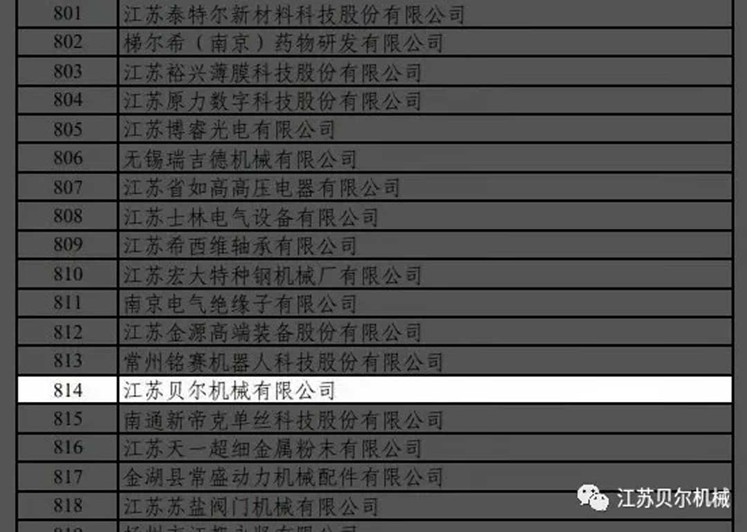 2021年7月19日,中國(guó)工業(yè)和信息化部公示了第三批專精特新“小巨人”企業(yè)名單,江蘇貝爾機(jī)械有限公司成功上榜。