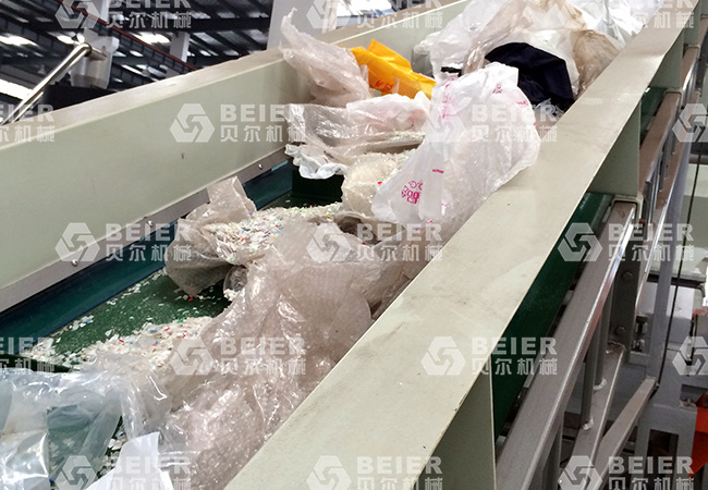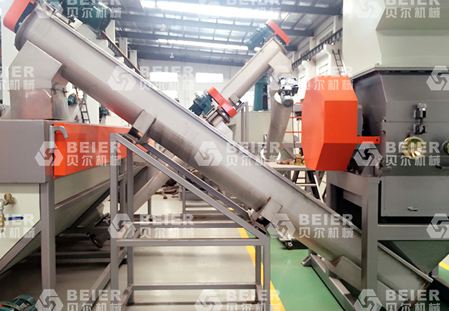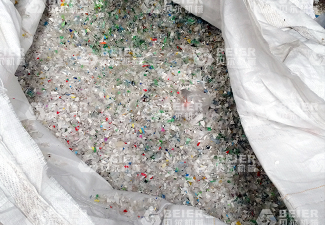 該回收線由幾個(gè)主要環(huán)節(jié)構(gòu)成:垃圾分選(自動(dòng)和人工),標(biāo)簽剝離 瓶子破碎,薄膜清洗(漂洗,熱洗和摩擦洗),薄膜脫水和熱風(fēng)干燥,包裝。