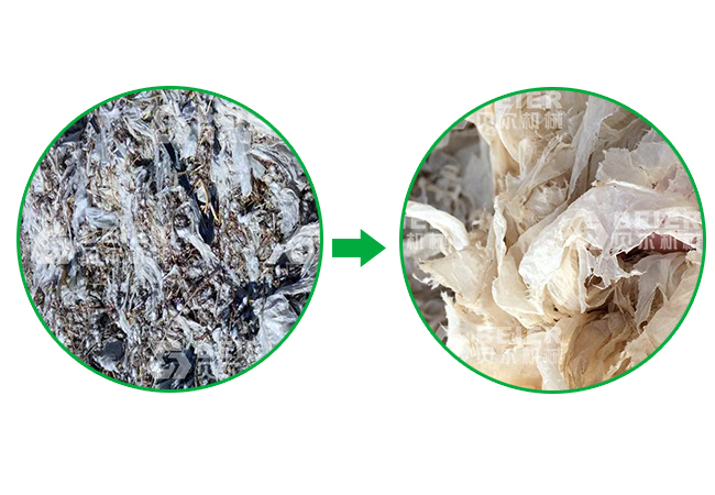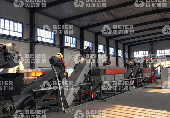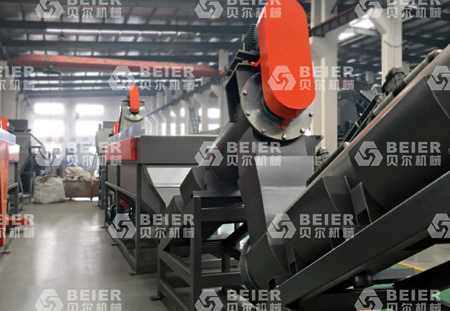 江蘇貝爾機械的農地膜回收生產線特別針對復雜難處理的地膜進行了特別設計,利用特殊技術在前道對地膜進行雜質分離,比如一些難以處理的秸稈等輕質雜志的有效剝離,從而保證了最終清洗的質量。